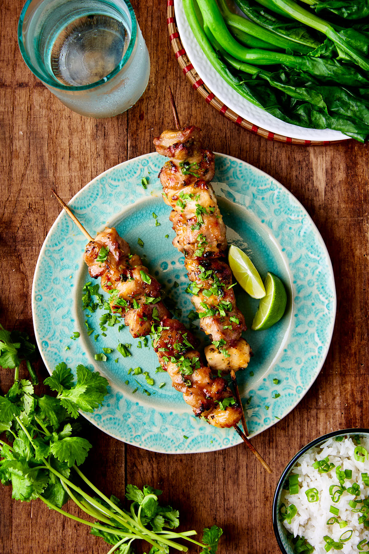 The problem with most chicken skewer recipes I’ve seen is that they require some amount of marinading time (like in this recipe for Sambal Grilled Chicken Skewers). I wanted to develop a recipe that would be just as delicious without needing that extra time. This recipe hits that mark.